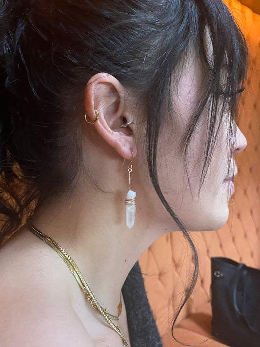 14k Yellow Gold Wrapped Dangle Quartz Earrings