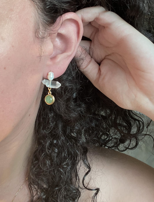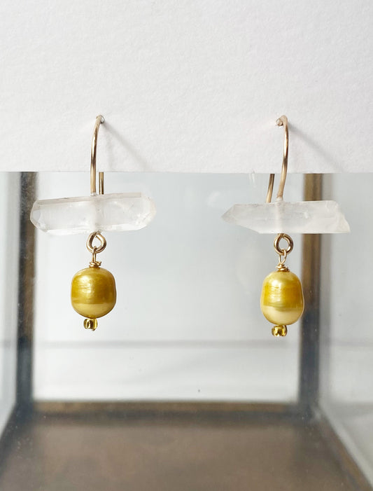 Inspired from the healing properties of natural quartz and its rule for clarity. Made from 14k yellow gold filled material and 100% natural gemstones.